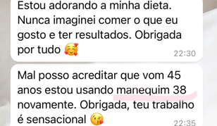 Ofereço suporte contínuo aos meus clientes, mesmo após o término do programa de emagrecimento, com consultas com valores diferenciados.